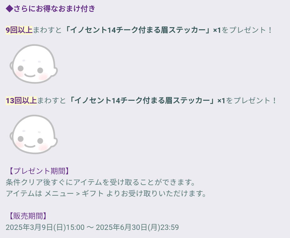 チーク付のまる眉ステッカーが最大で2個もらえるっていうことなんだけど~…