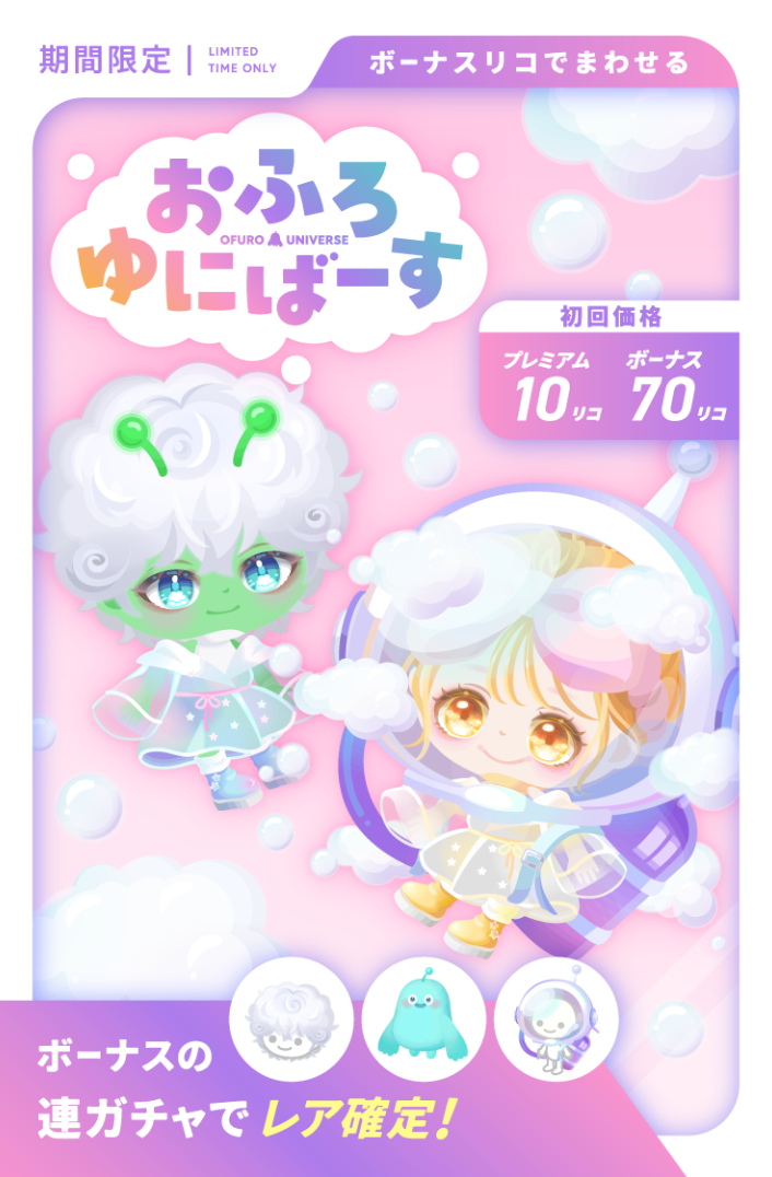 こちらでは上記でのおふろゆにばーすイベントクエストと連動した有料無料選択ガチャにて『おふろゆにばーす』内容となっているので記録していきますね(^_-)-☆
