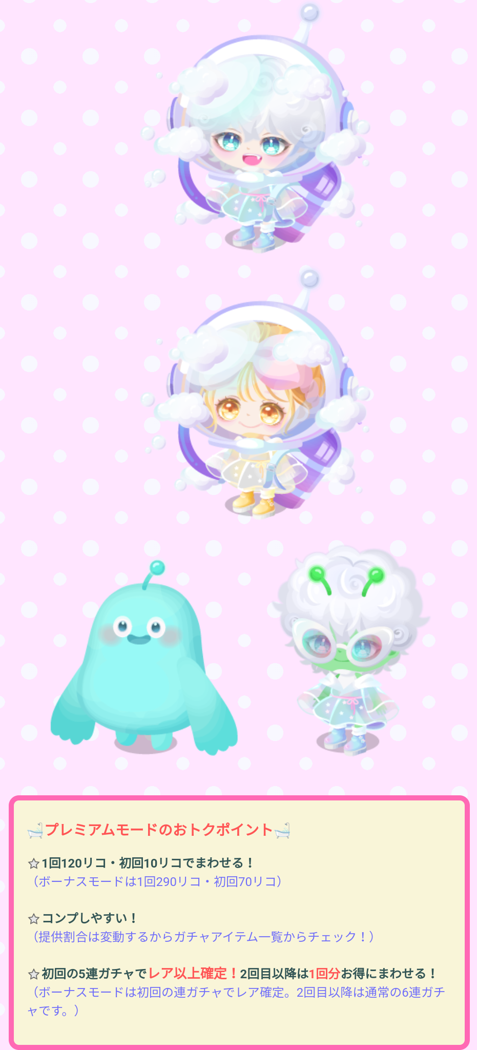 有料も無料も初回のシングル価格が安くお試しやすいという点は相変わらずの設定で〇だと思いましたw(イベクエ期間中はガチャチケも貰えるので実質0リコからw)