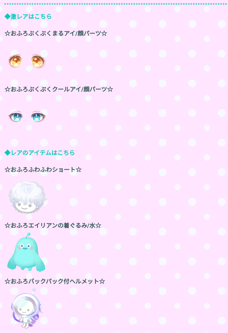 激レア設定では男女別々な顔パーツの目が2種類とあり雰囲気を見れば(・∀・)イイ!!とは思うんだけど~実際によくよく目だけを見ると普段の有料無料選択ガチャの目に似ているし~クオリティ自体もログインボーナスとそこまで変わり映えしないので敢えて狙う必要性はなさそうに思いました( ゚д゚)アーネ