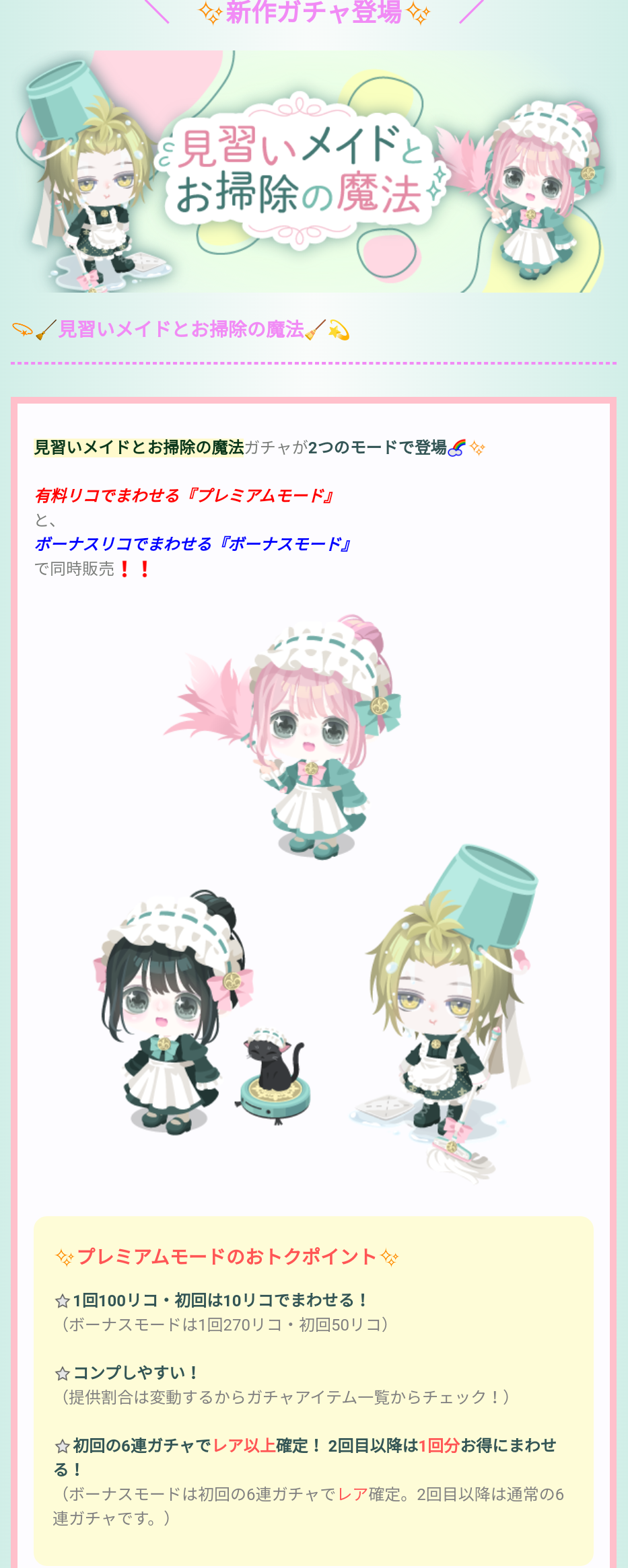 こちらでは後半記事内容として見習いメイドとお掃除の魔法ガチャとなっているので記録していきますね(^_-)-☆