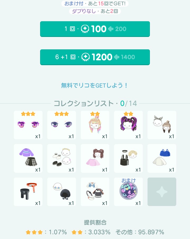 はいwというわけで今回始まったガチャの名前は「スポーティコーデ」ガチャだそうですw