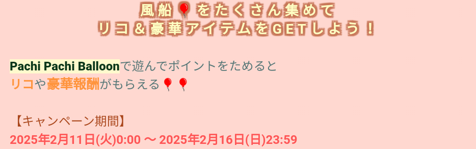 こちらでは一定間隔で登場する人気ゲームイベントのバルーン回収にて、