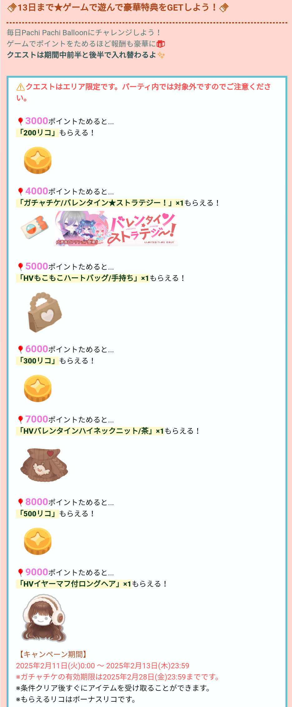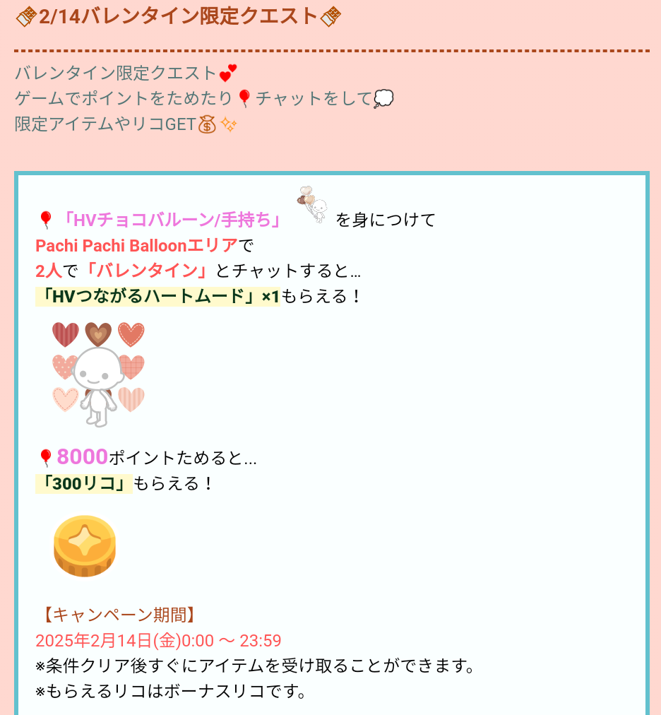 更に、14日限定のクエストではチョコバルーン手持ちが必要となるのでログインは必須となるんだけど、
