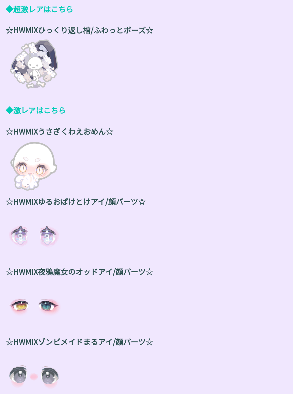 激レア設定の方では各クリエイターの顔パーツの目が4種類〜って思ったけどこちらでもふるふと製作であろうおめんが激レア化されていて他のメンツが引き立て役レベルな内容に思えましたΣ(´∀`;)アラマッ
