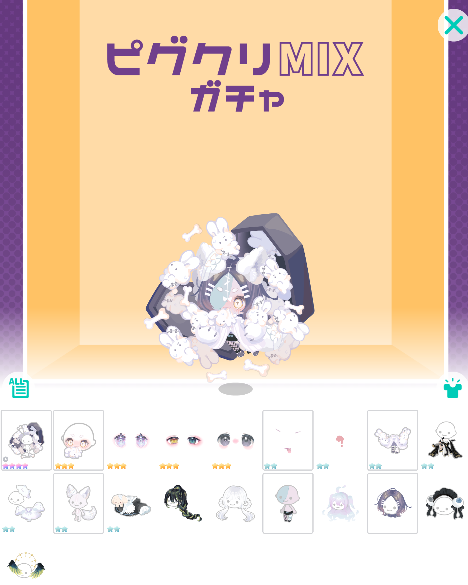 こちらではピグクリことピグクリエイターのふるふと、シャルム、ヒレカツ子、しろみの4人が共同でハロウィン向けに作った有料ガチャより「ピグクリMIXガチャ」が登場したので記録していきますね(^_-)-☆