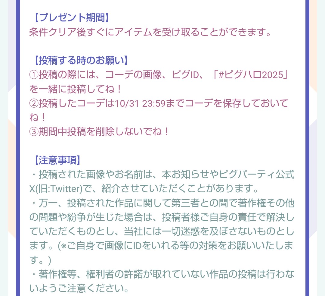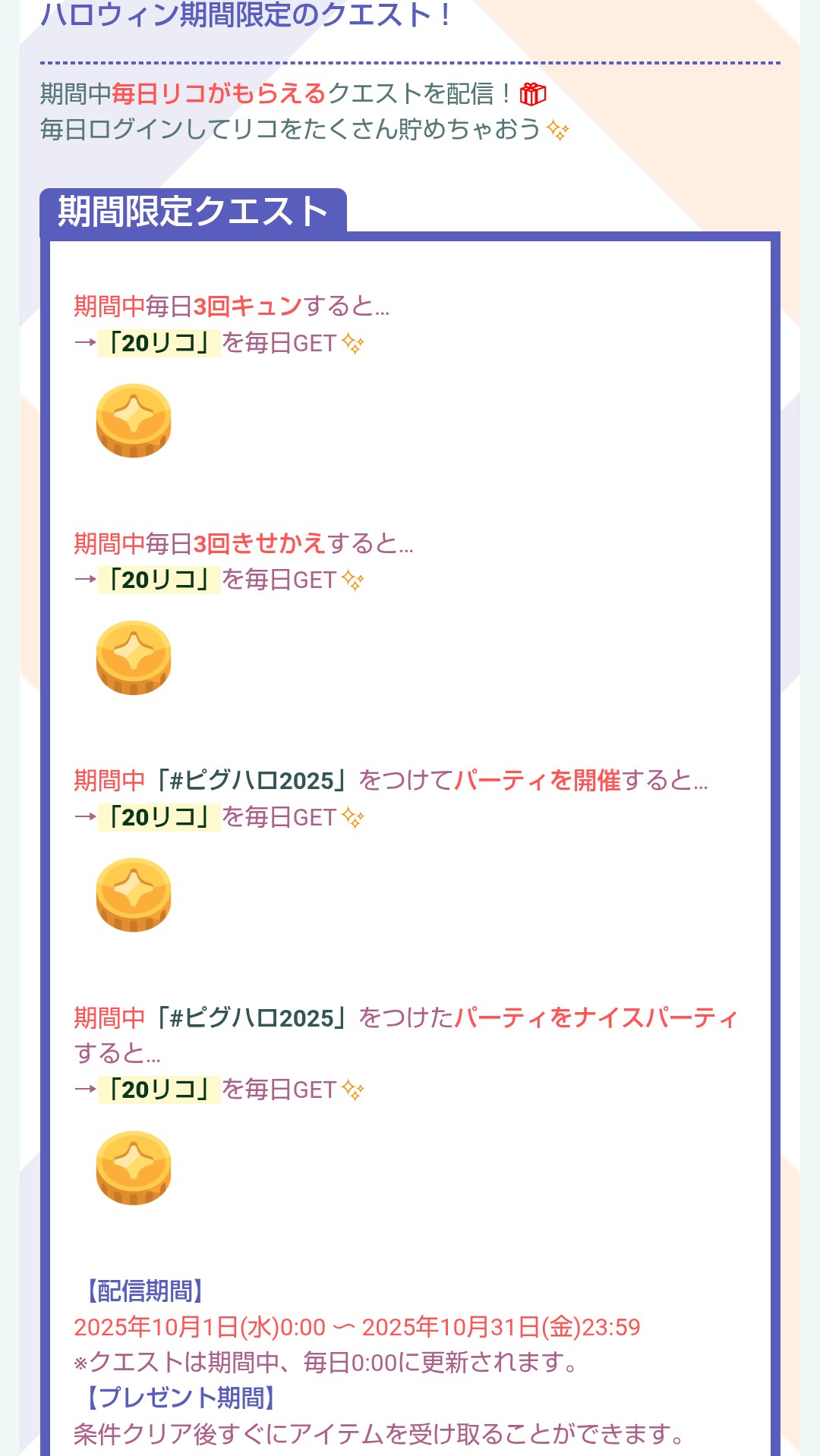 ・【#ピグハロ2025】のタグをつけてパーティ開催→20リコ