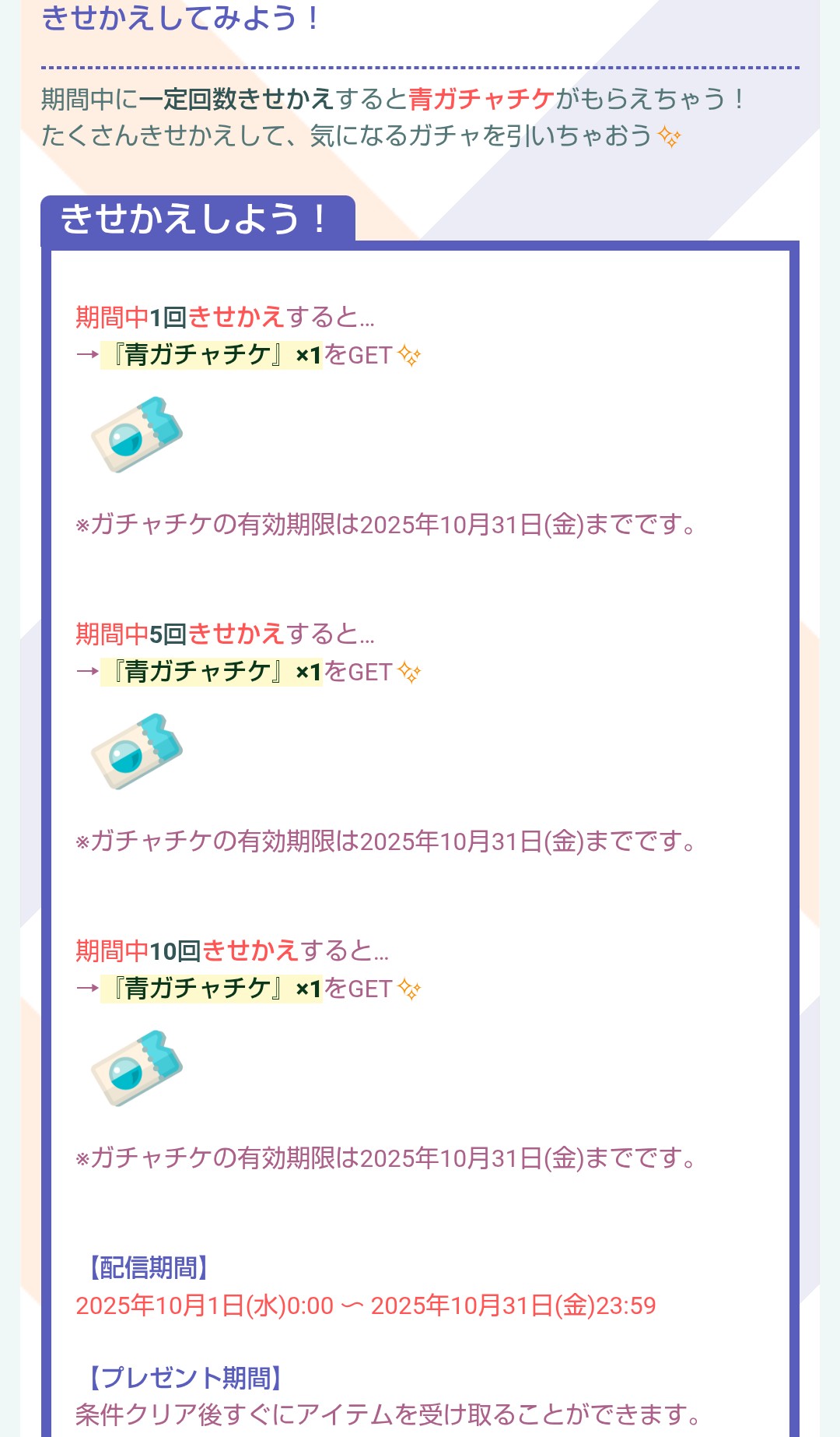 のガチャチケがもらえる内容を記載しています。