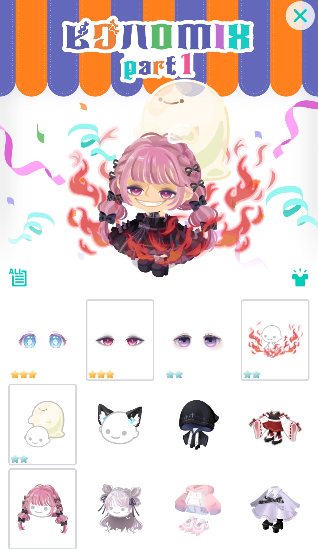 ピグハロMIXガチャのpart1の内容一覧は上記のようになっていて、