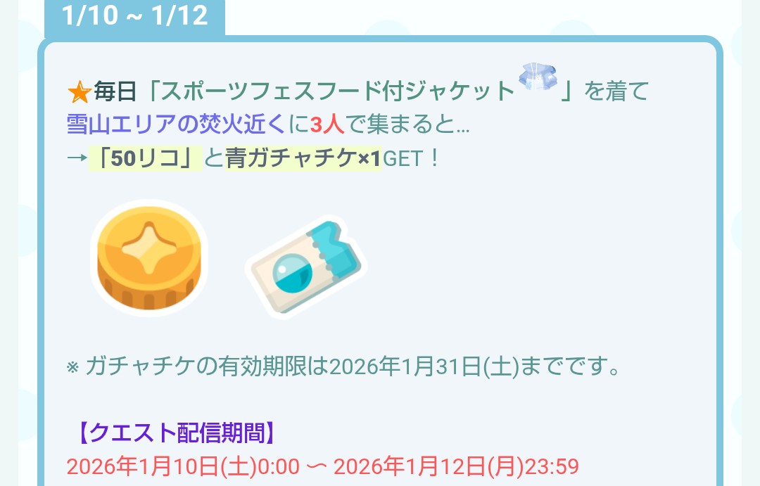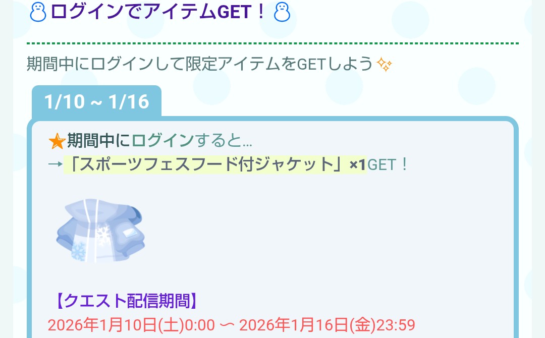 こちらではクエスト参加に必要なジャケットが期間中にログインすることでもらえるので