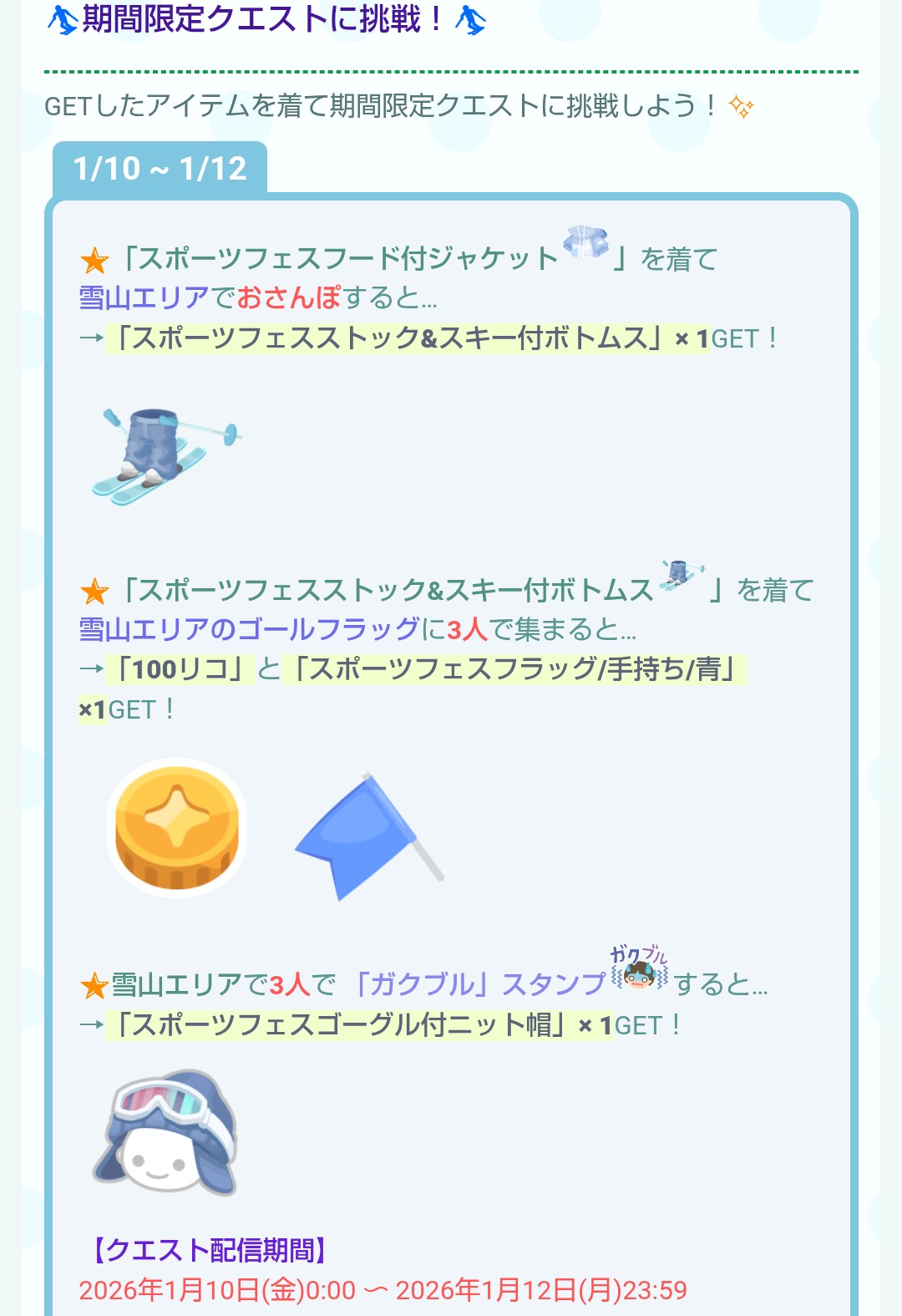 「ピグパウインタースポーツフェス」が登場したので記録していきますね(`◉◞౪◟◉)