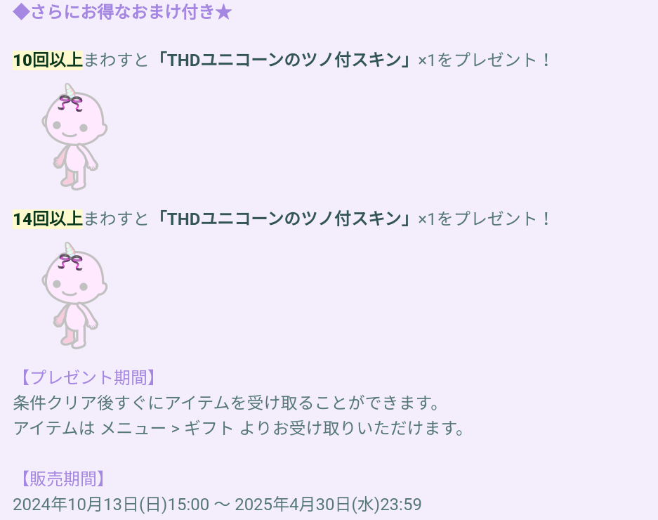 おまけ内容では初回の連ガチャではもらえない10回(連ガチャは6連のため)と14回という搾取スタイルで、