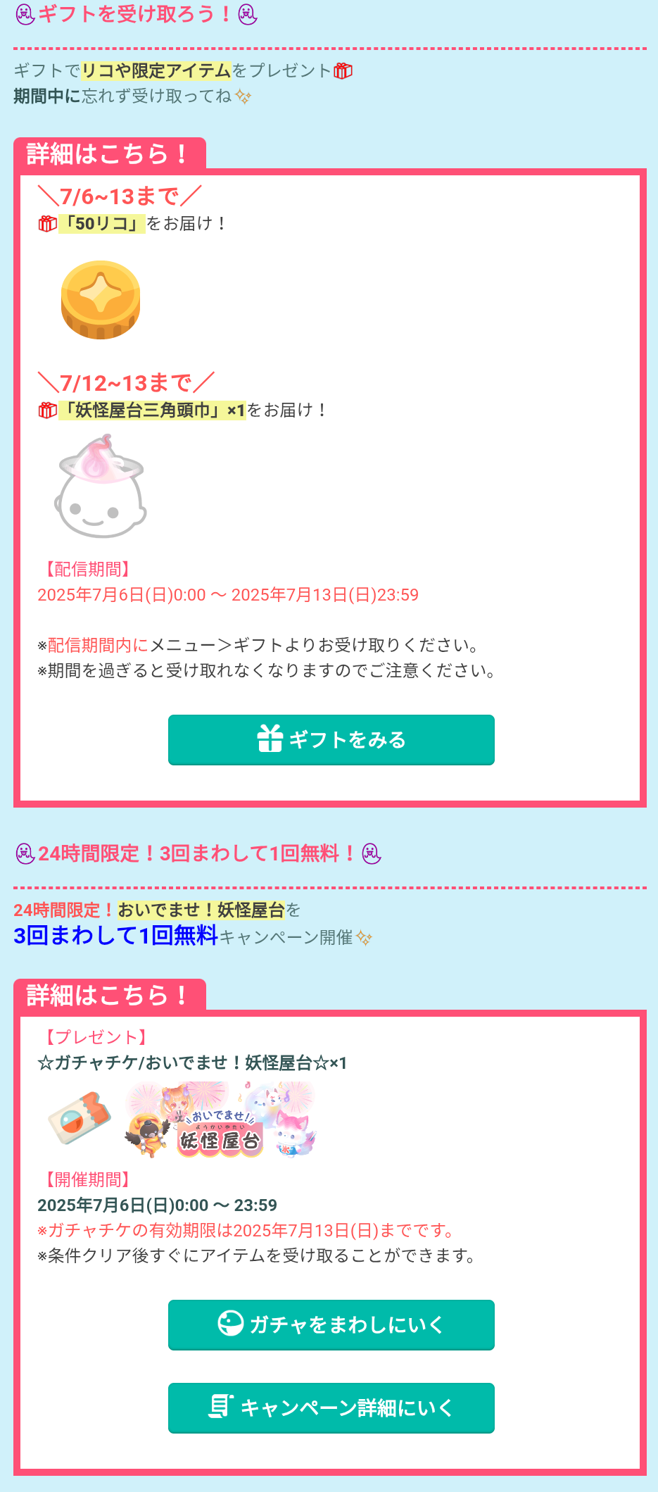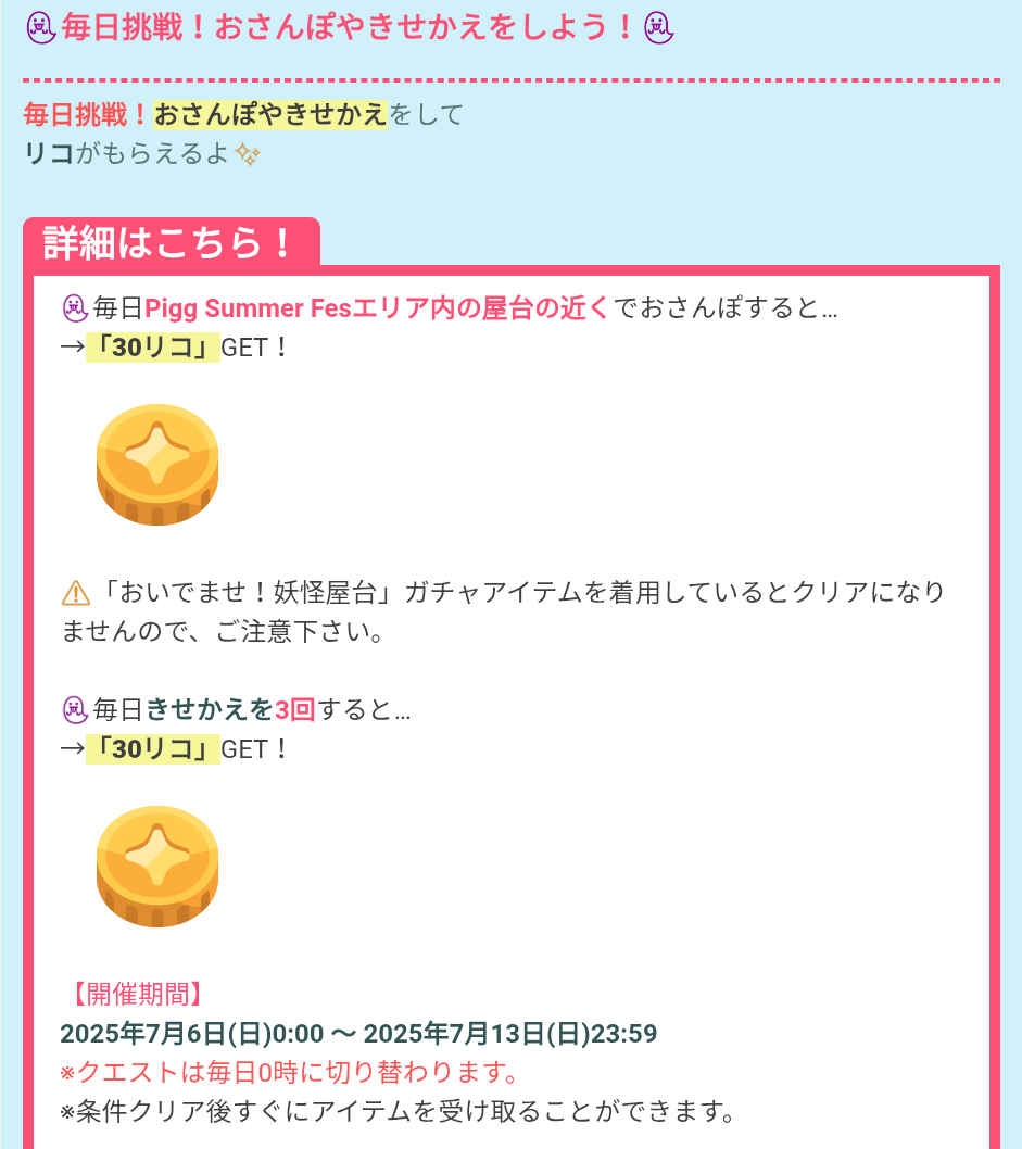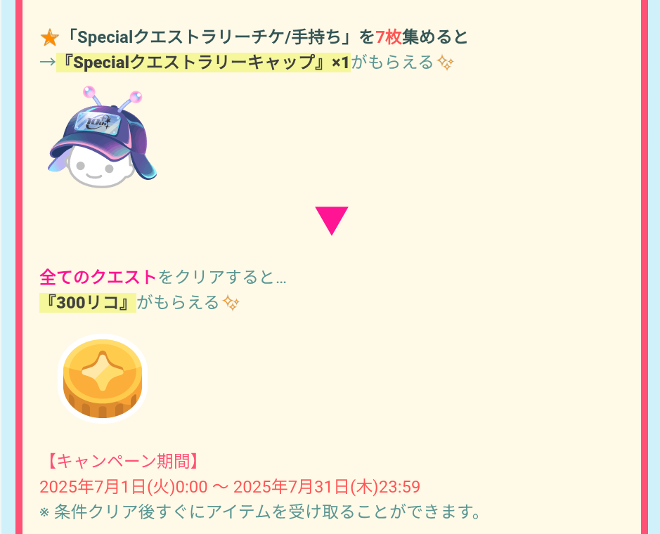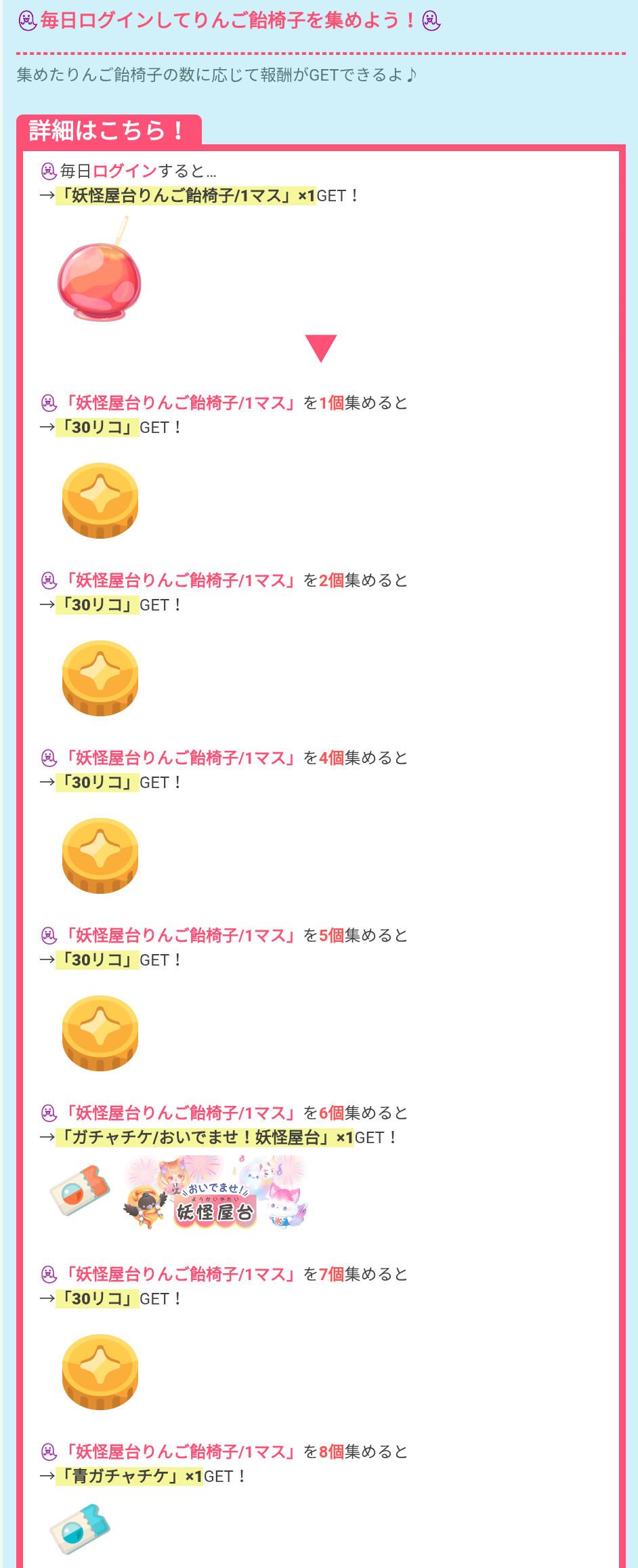 がもらえ~それを規定個数集めていくことで無料リコやガチャチケが貰える内容となっています。