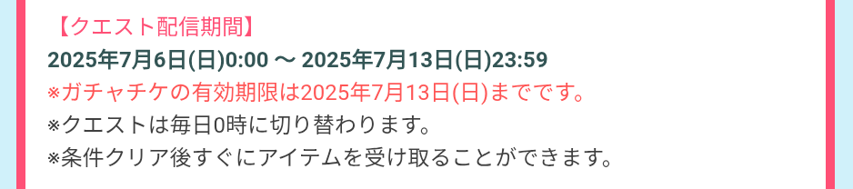 スペシャルクエストラリーのチケットが貰えるクエストとなっています。