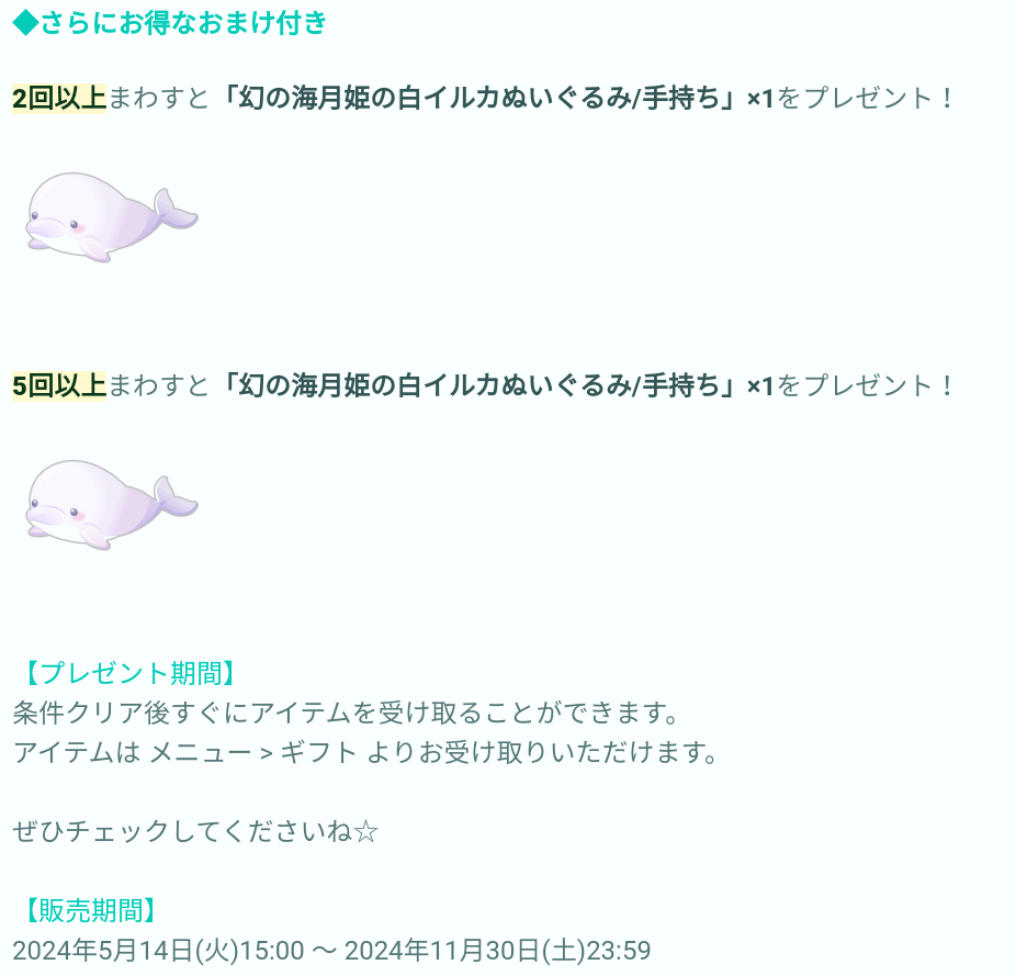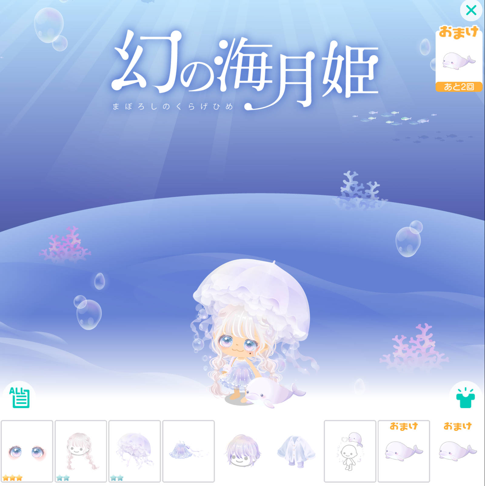 こちらでは初回や連ガチャが安いけどそこまで(・∀・)イイ!!とは言えないクオリティで以前にも使われたネタの有料ガチャより「幻の海月姫」が登場したので記録していきますね(^_-)-☆