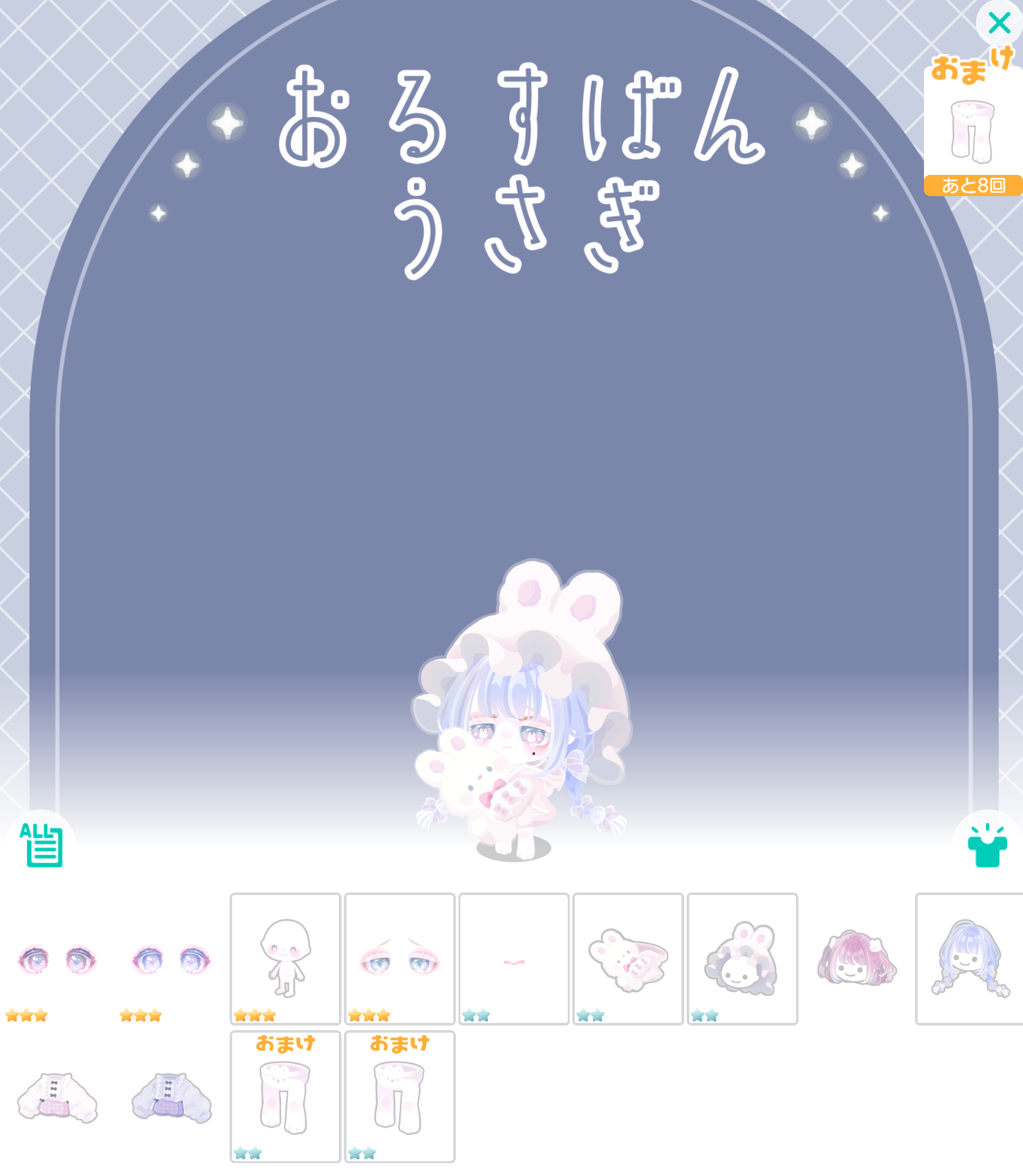 こちらではアイフィルターとスキンチェンジアバターを複合アバター化させた内容以外が至ってありきたりで似たり寄ったりな人気動物ネタの有料ガチャより「おるすばんうさぎ」が登場したので記録していきますね(^_-)-☆