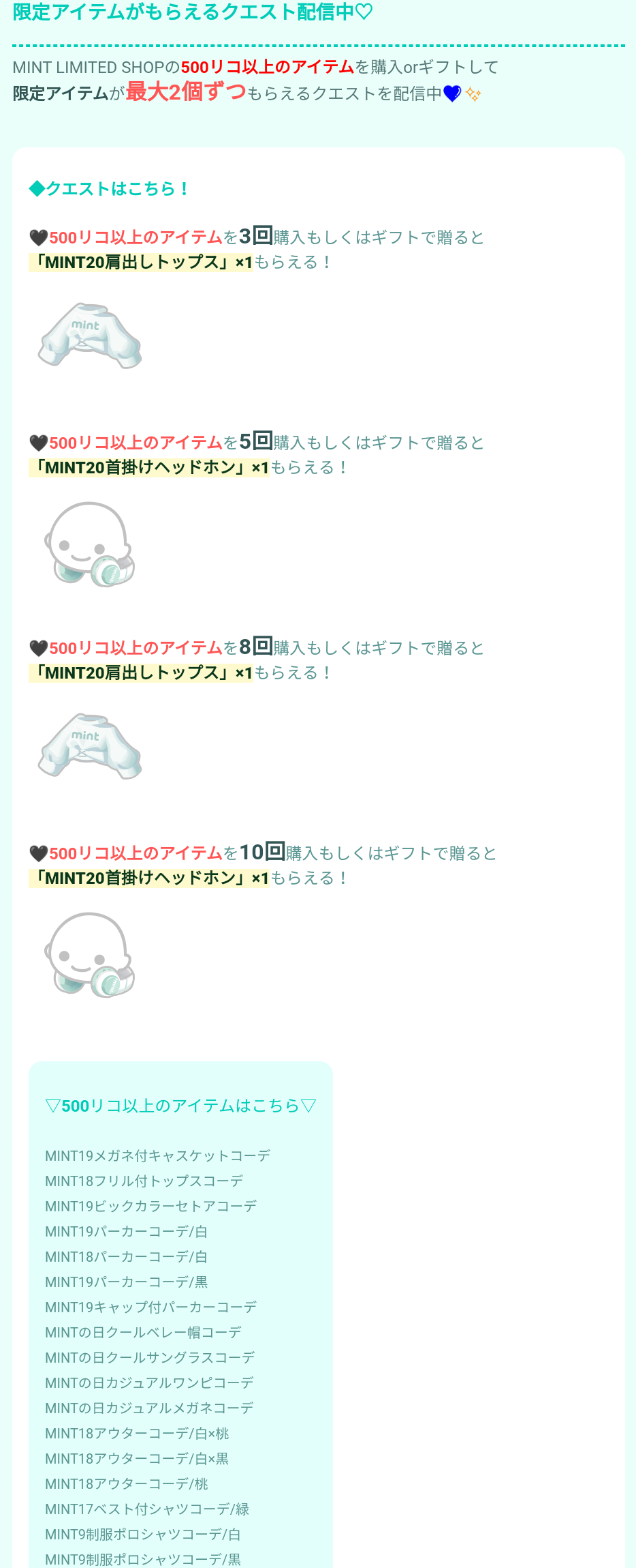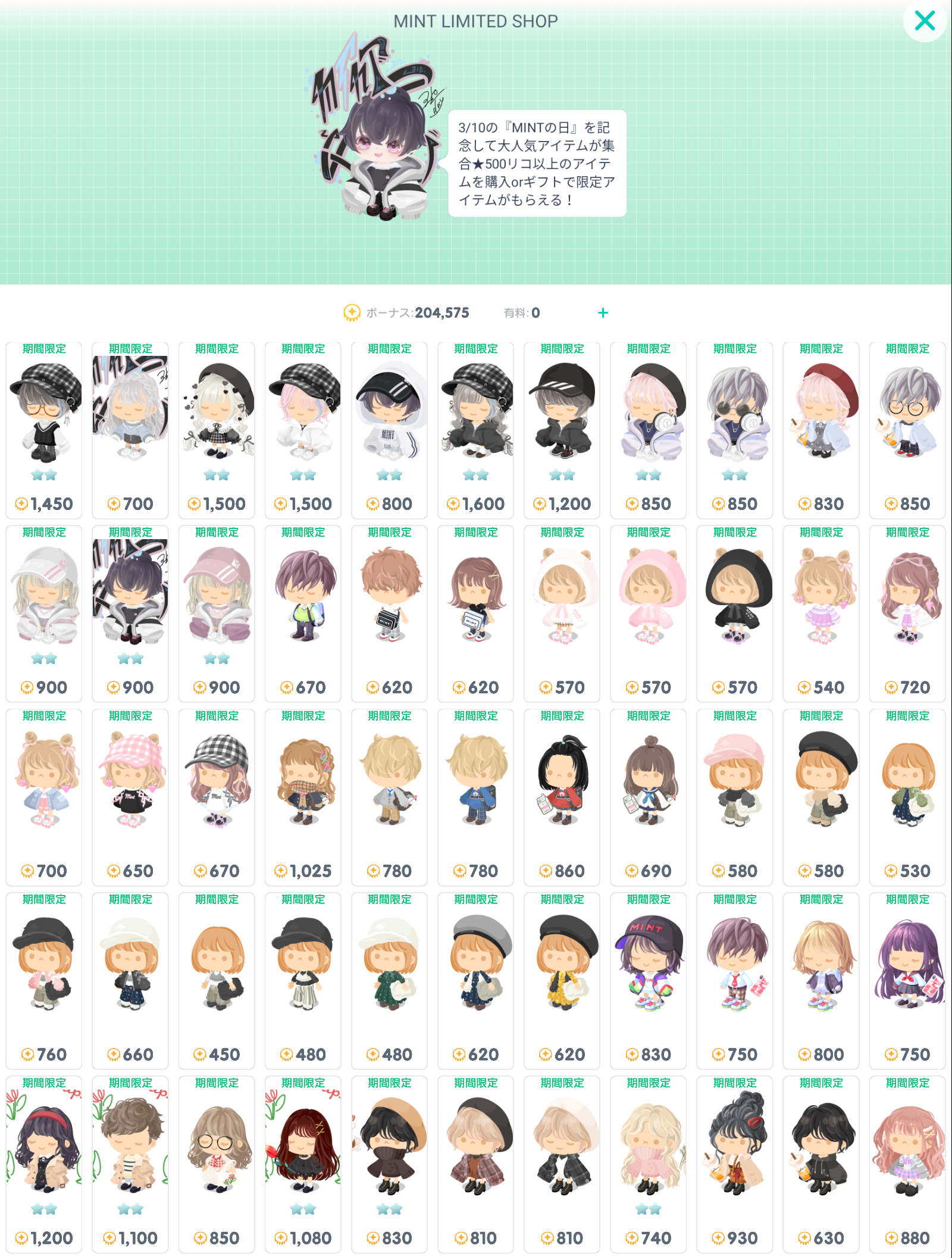 こちらでは3月10日がミントの日という事でめっちゃくちゃ懐かしいピグパブランドのMINTが新作含めて復刻大量内容の有料ショップより「LIMITED SHOP」が登場したので記録していきますね(^_-)-☆