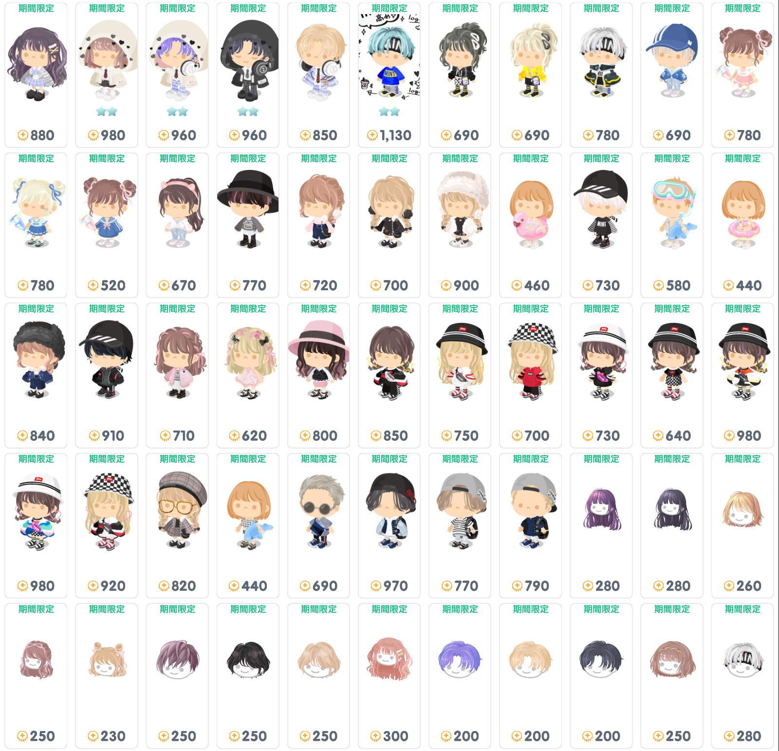 ボリューム量は超大量で価格内容も高くても1600リコとなっていて、今現在の有料ショップだとライドアバターなど☆4アイテムや顔パーツの目など☆3アバターを直に購入という感じで価格設定がバグったような高額課金モードみたいになっているからこれをみているとすんげぇ安価だし手が出しやすくて(・∀・)イイ!!よねwって思っちゃいました(´ー`*)ウンウン