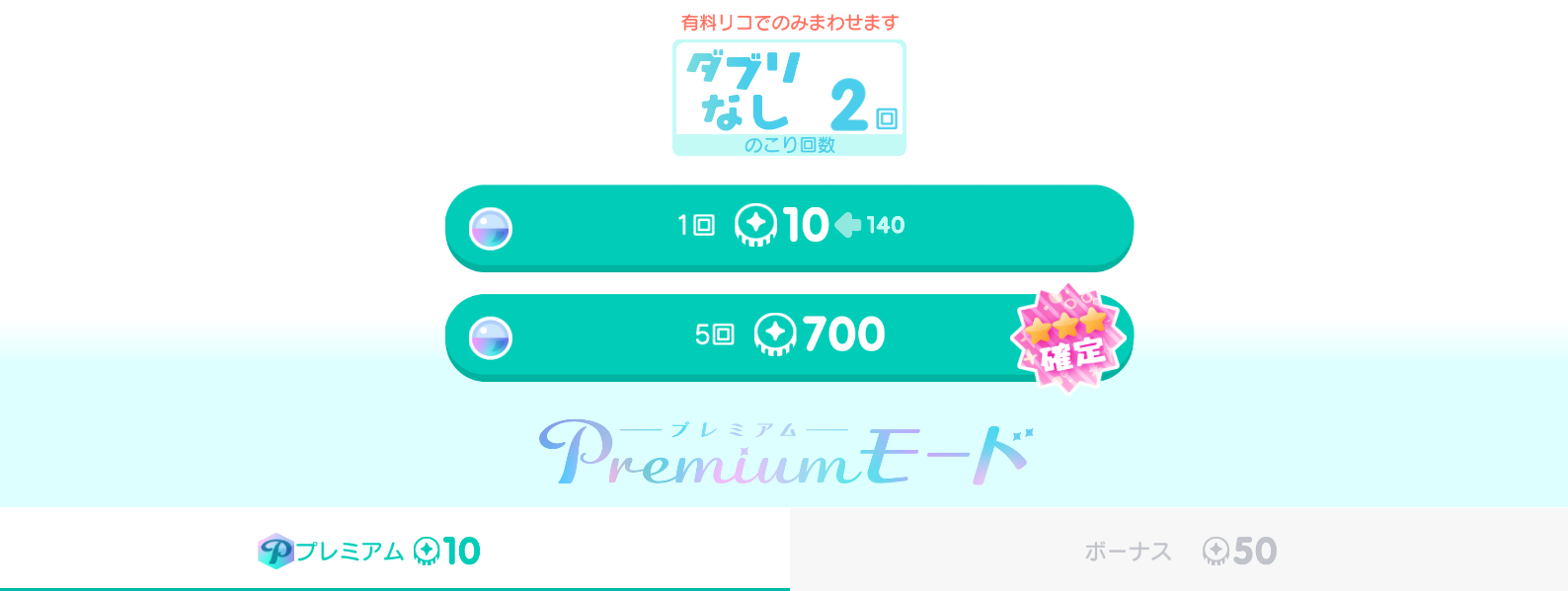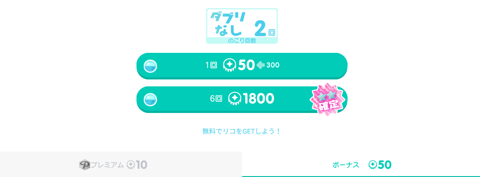 有料無料選択ガチャ ※刷り込み注意※有料リコと無料リコの消費価格をよく見て良し悪しを検討するべしw ふわふわりんと綿雪のふるさとガチャ