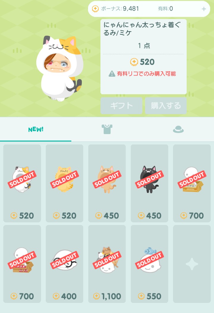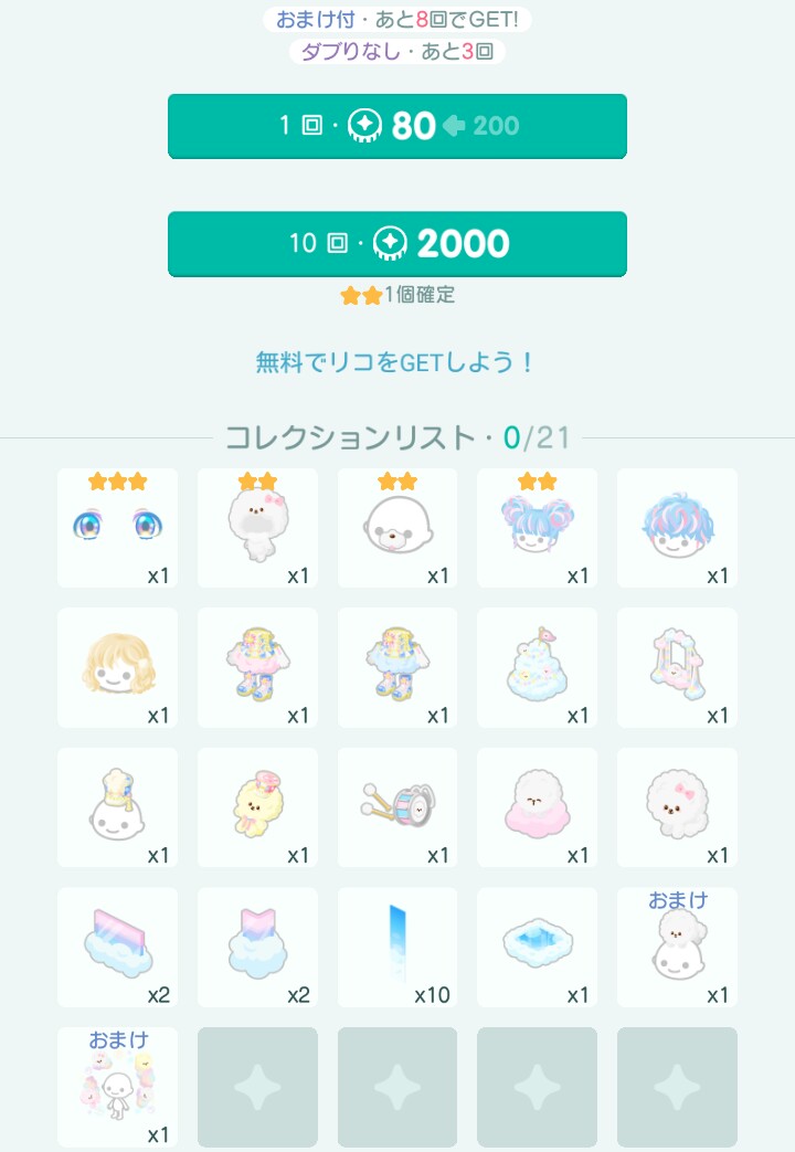 可愛い物が揃っているのに無料リコで買えないのがえげつないわ┐(´д`)┌ヤレヤレ