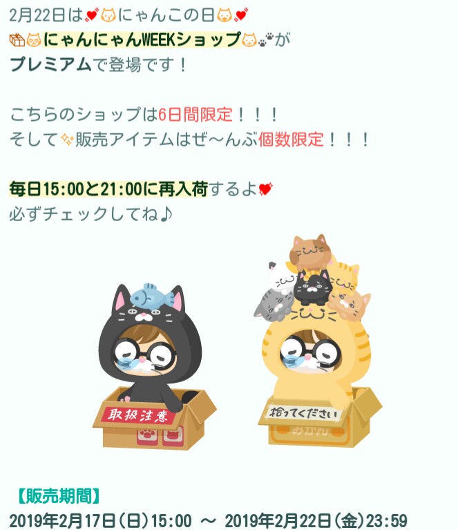 ここからは有料リコ限定で購入できるにゃんにゃんweekショップの内容となります。
