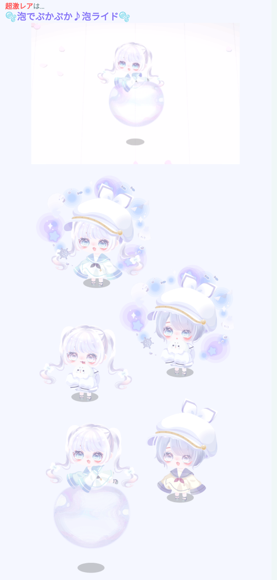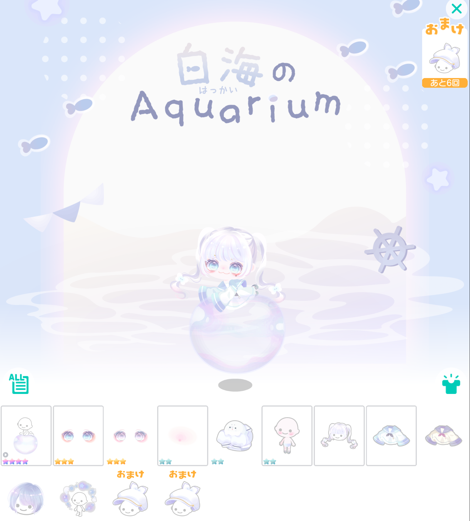 こちらでは星4アバターのふわっとライドや可愛らしい雰囲気のアバターが目玉の有料ガチャより「白海のAquarium」が登場したので記録していきますね(^_-)-☆