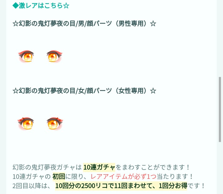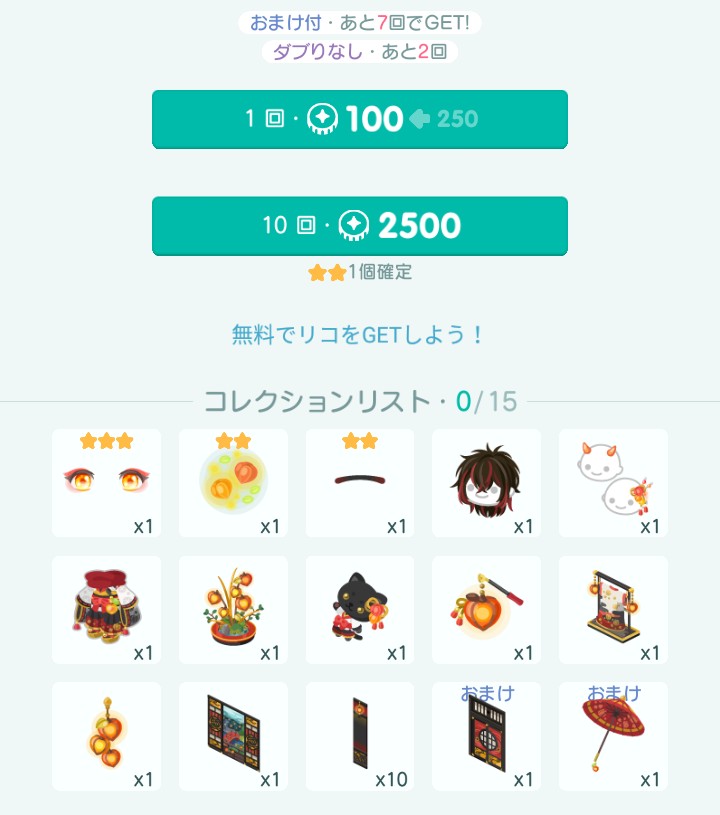 っていつもなら思うのですが…来月か今月あたりに絶対ハロウィン内容のアイテムが登場すると予想しているので惜しいですがリコ節約のためここは流します( ノД`)シクシク…