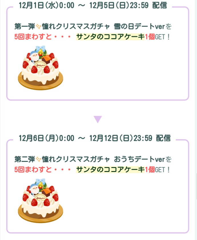 A.毎日チケット回収→ガチャ回す→5回回せば1個ココアケーキ貰える