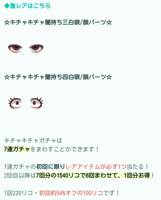 激レアでは普段の有料内容からでは想像できないレベルの個性的な顔パーツの目であるのでお金をつぎ込んで個性を出せる課金者は(σ・∀・)σゲッツ!!して楽しめるんだろうけど…