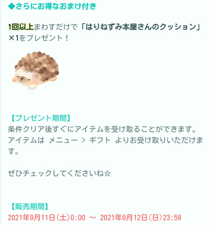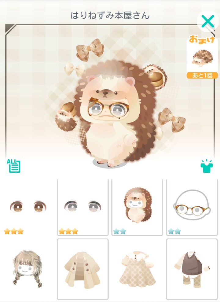 こちらでは販売からたった2日間しか期間のない有料ガチャより「はりねずみ本屋さん」が登場したので記録していきますね(^_-)-☆