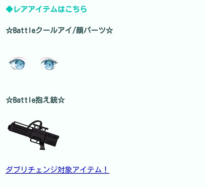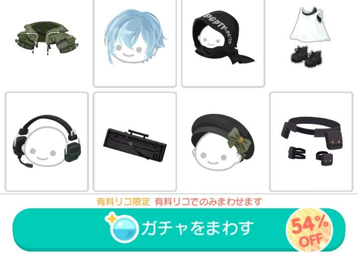 ラインナップ一覧もどれも被りがなく、顔パーツの目も2種類であり、どちらも激レア〜…ってわけでもないので全体的に回しやすい感じのラインナップになっていて、課金できる方は回す価値ありだとダデェは思いましたφ(`д´)メモメモ…