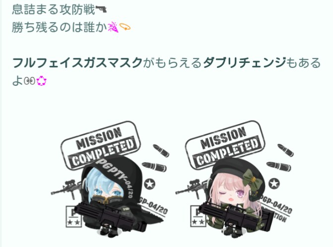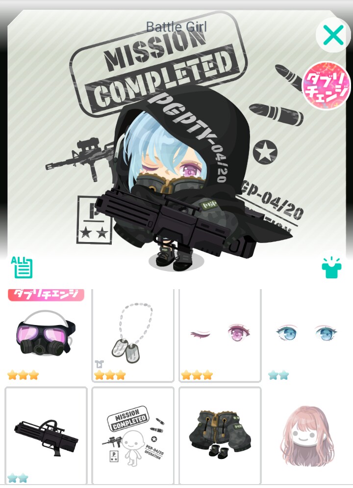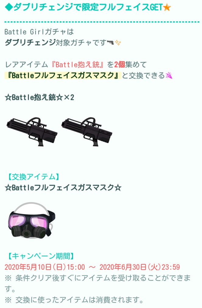 まぁ有料ガチャって無料ガチャよりレア以上の排出率がかなり高めに設定されてあるから、ダブって仕方なしでこのガスマスクを貰う~って感じの妥協枠になるんだろうなぁって思いました(* ´艸`)クスクス