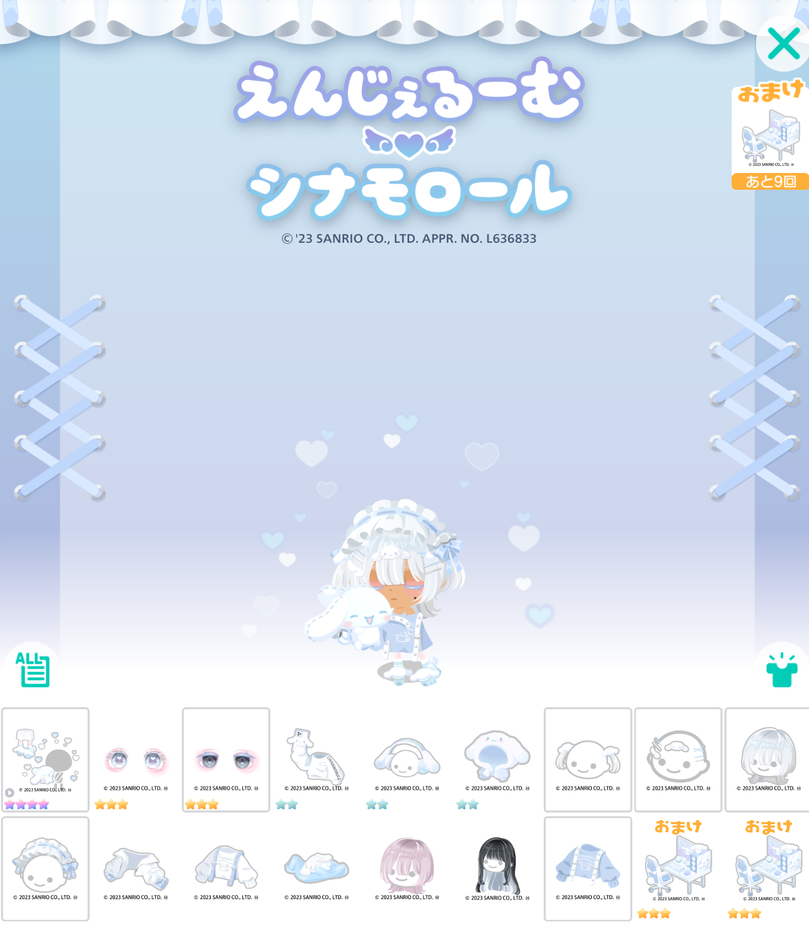 こちらでは3月6日がサンリオシリーズのシナモロールの誕生日という事でいきなりコラボしている有料ガチャより「えんじぇるーむシナモロール」が登場したので記録していきますね(^_-)-☆