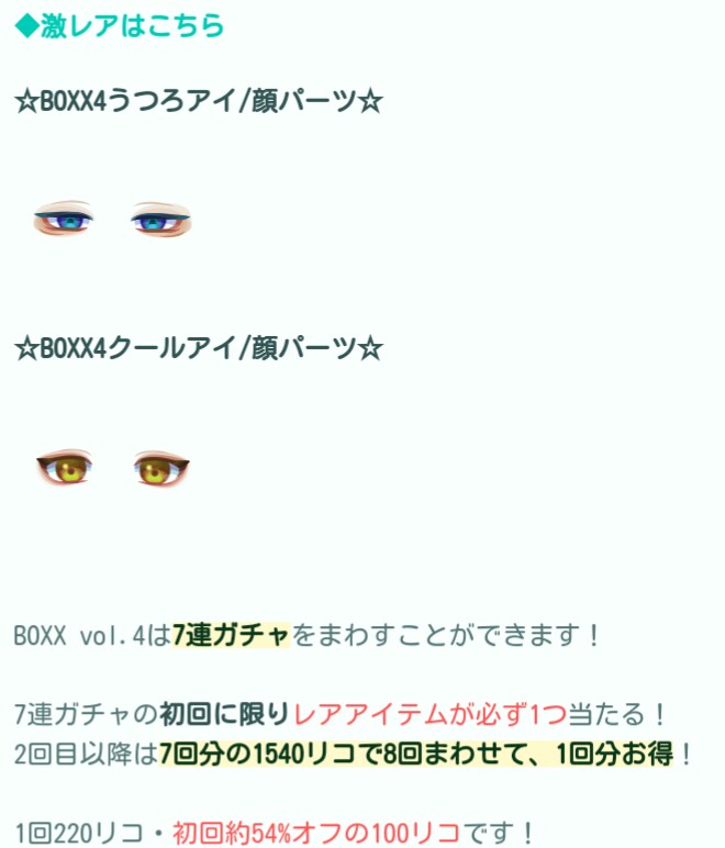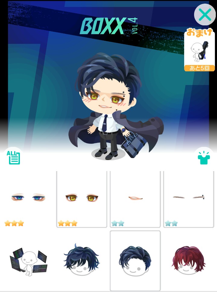 顔パーツの目は男の子向けということで陰キャラと陽キャラのような2種類に分かれているのは有りですが、希望のパターンが出ないと地獄を見そうなのが有料ガチャの闇だから深追い厳禁なのでよくよく考えてから遊びましょう(-_-)/~~~ピシー!ピシー!