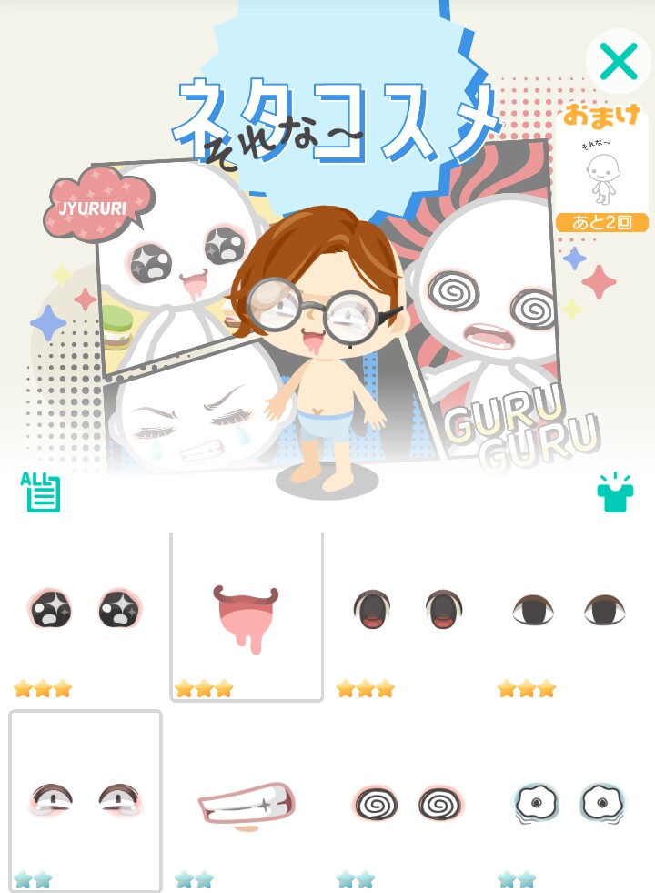こちらでは顔パーツや口パーツなどのネタが詰まった有料ガチャより「ネタコスメ」が登場したので記録していきますね(^_-)-☆