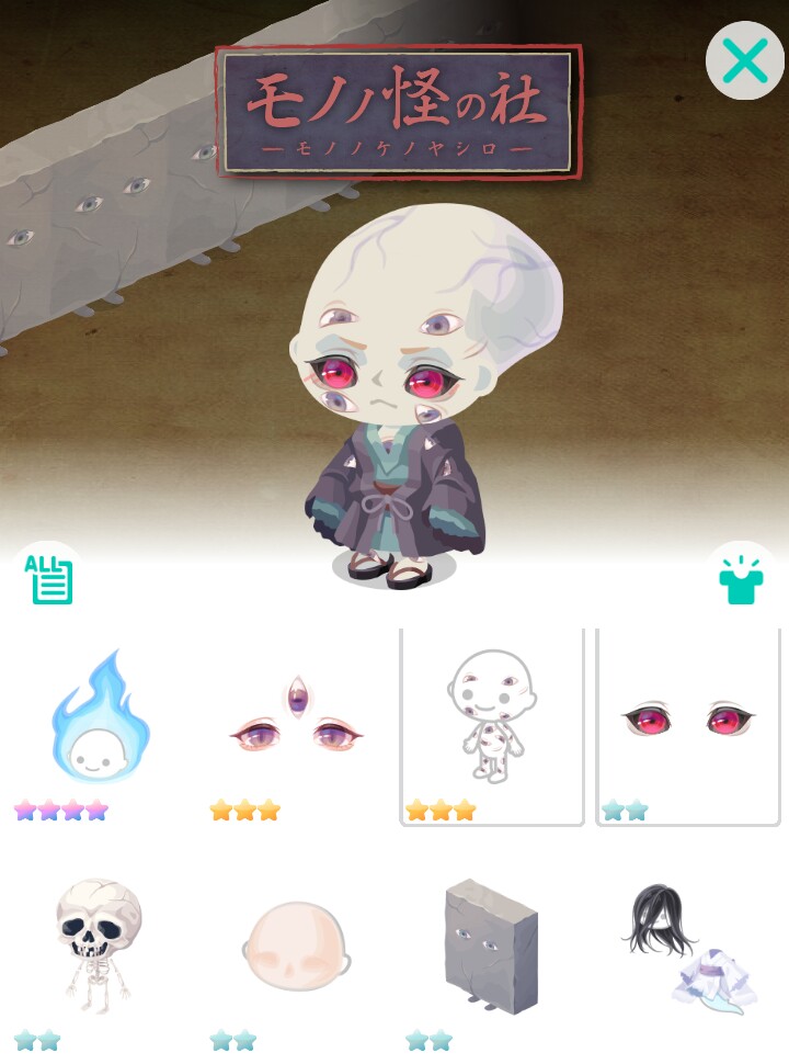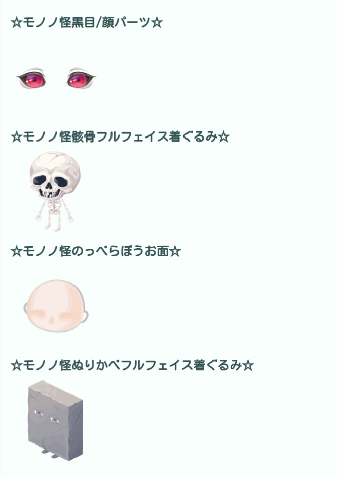そしてレア設定では黒目という恐怖定番な顔パーツの目にのっぺらぼうのお面、そしてガイコツの着ぐるみ&ぬりかべの着ぐるみという可愛らしい着ぐるみが設定されていてこれはこれで人気がありそうな気もしますねw