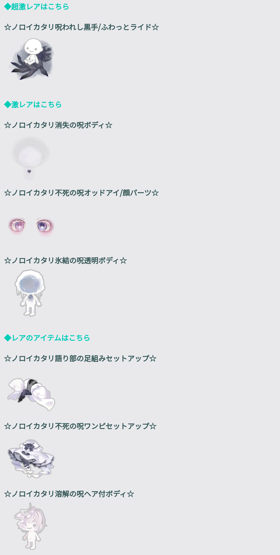 こちらではふわっとライドより顔が消えるアイテムが目玉内容の有料ガチャより「ノロイカタリ」が登場したので記録していきますね(^_-)-☆
