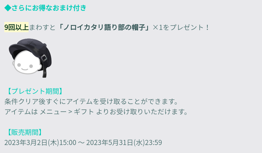 おまけ内容では需要と供給が追い付か居ないレベルでのあのキャスケットに似た帽子となっていておまけなのでダブらすことが実質不可能(ライバー報酬は除く)という事である意味(・∀・)イイ!!おまけではないかと思いました。