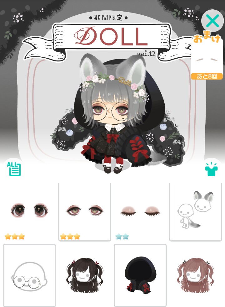 初回の連ガチャのみレアが1つ確定するのは有料内容では消される事ないので特に書く事はないですが、レア以外にも激レアも顔パーツの目なのでこういったデザインが好きな課金者ユーザーは回したらいいんでない?