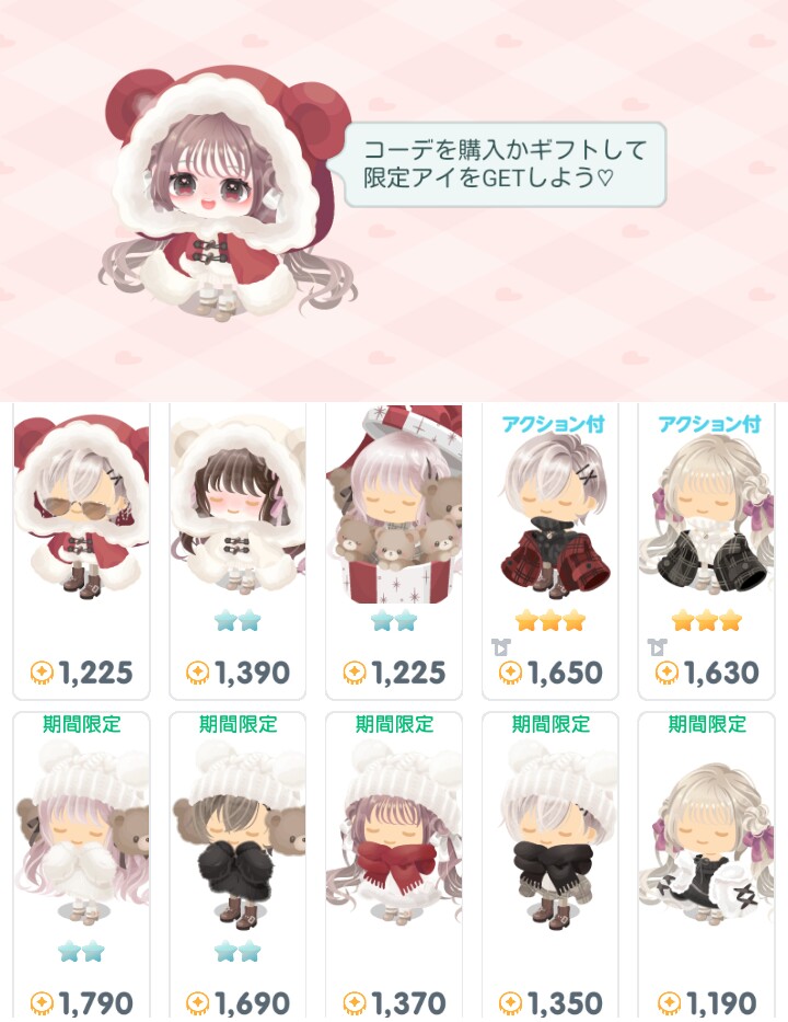 そして全体的なラインナップ一覧ではクリスマス前に軽く1,000リコを越えるコーデばかりで実際にクリスマスが来る前まで着ているか?って言われたら…そんなこともないんだろうなあって思うと出す時期がビミョー過ぎなんじゃね?って笑いしか出ないダデェでしたwww