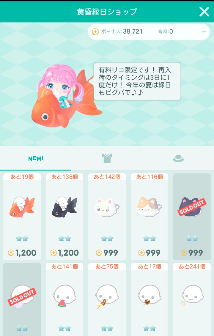 縁日と言えば夏の定番なイベントなのにそれを結局性懲りもなく有料オンリーで出すとかやっぱりピグパの運営って…課金者贔屓よねぇ┐(´∀`)┌ヤレヤレ