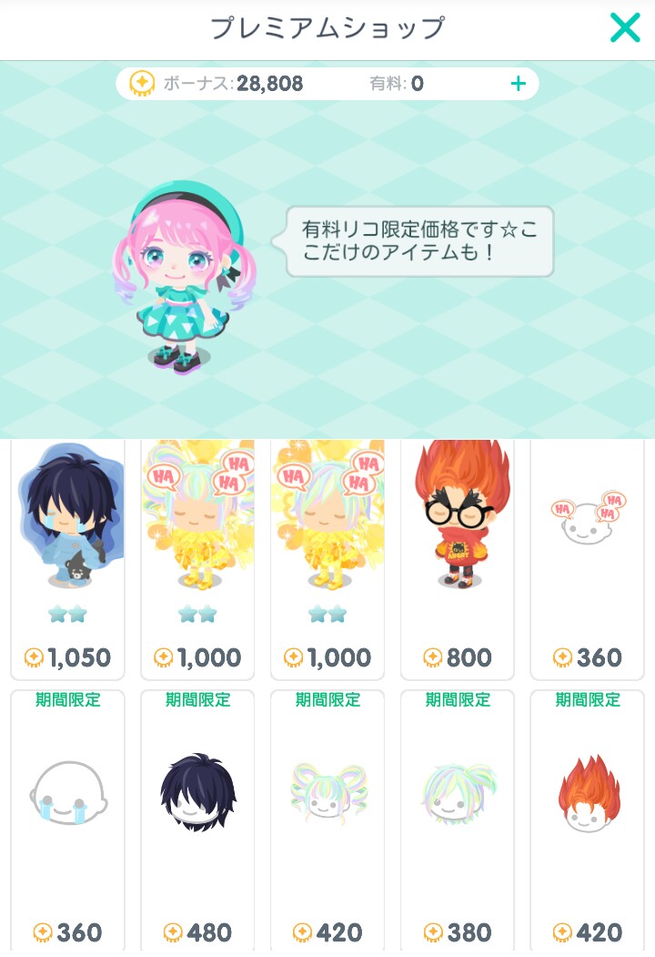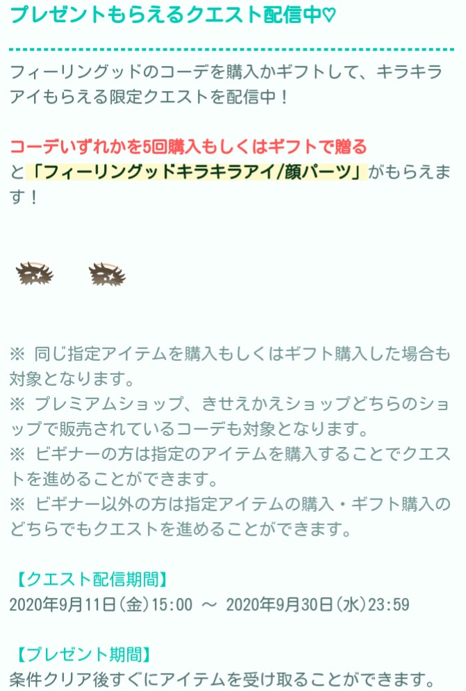 そして珍しく有料無料同時ショップでは無料内容のコーデ5着を購入またはギフトすれば上記の顔パーツ目が貰えるというやっと無課金ユーザーも参加できるキャンペーンが行われましたね( ´ー`)フゥー...