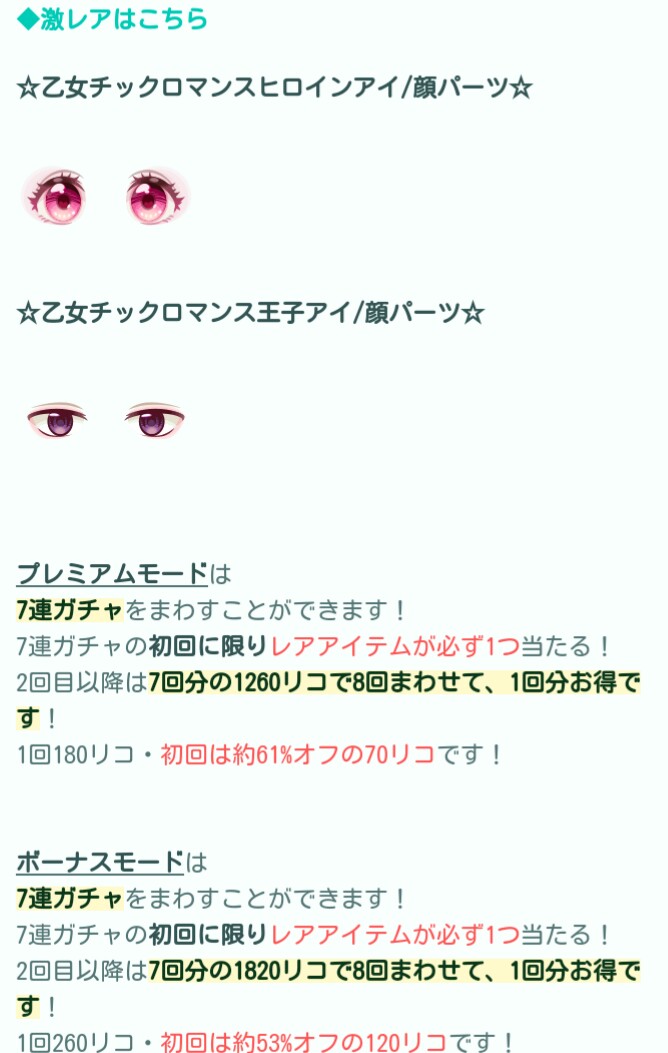 とりあえず言えるのは女の子の目はドデカデザインで無料内容にしてはまぁまぁ良い物だと思うので初回の連ガチャで上手く排出されたらラッキーですねw