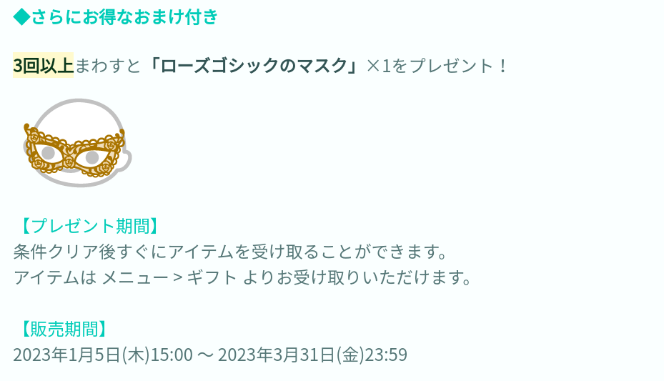 規定回数でのおまけと販売期間