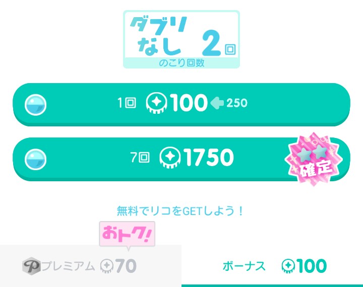 そして7連で1750リコで安めに見えるけど、1回で250リコ掛かるって思うと安くは見えないですよね?www