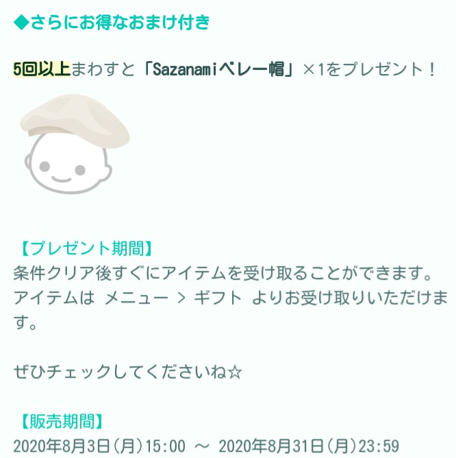 連ガチャで貰える分のおまけとしてなら「まぁいっかw」的な感じだけど別にベレー帽がおまけっていうのもねぇ…(;’∀’)