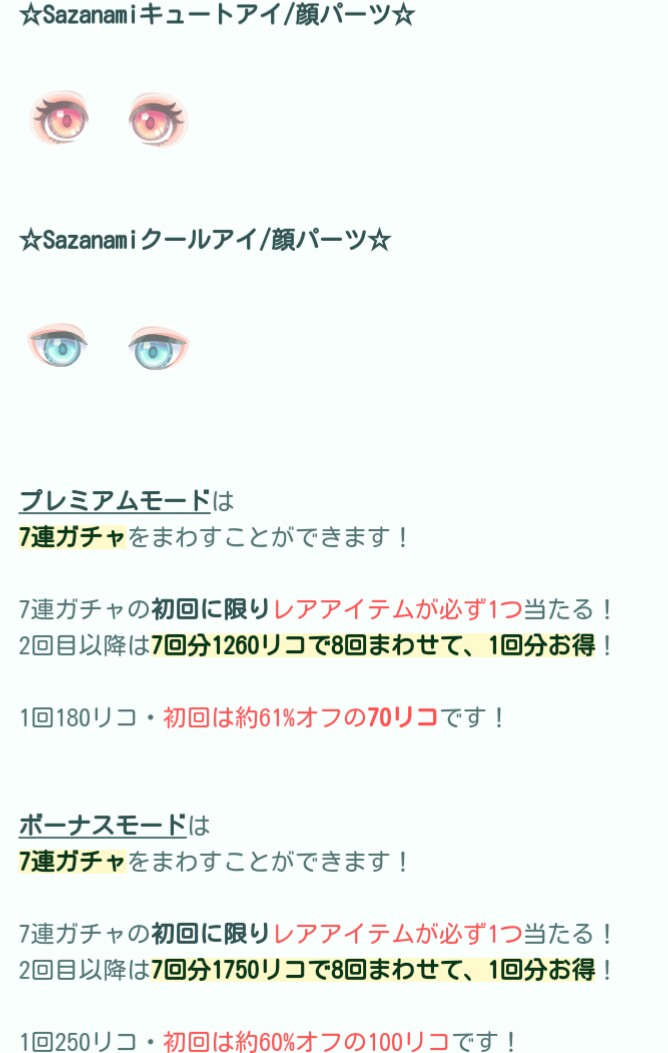 目だけは多少クオリティを上げとかないと誰も回してくれないと思っているのかそれだけで釣ろうと企んでいるのか~って疑惑を感じますが、つい先日でピグクリ2人がコラボと称して共同製作をしたガチャが神掛かっていただけにこれに課金するくらいならそっちに課金した方がいいだろw