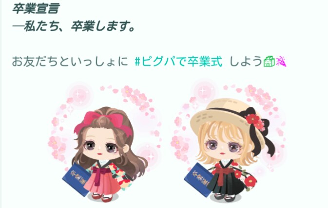 まぁそんな感じで現実世界では行うことが難しい中でピグパにいかにのめり込まそうかと企んだ結果が今回の#ピグパで卒業式イベントなんだと感じましたw