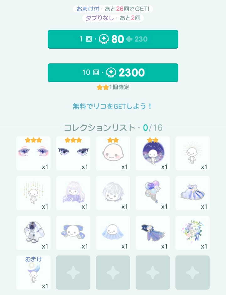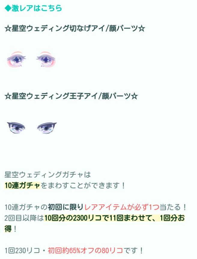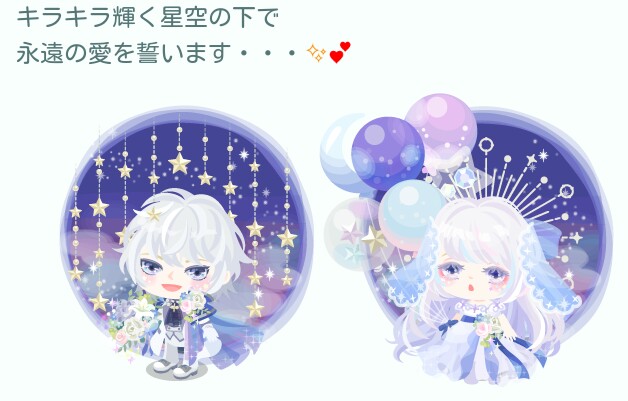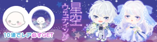 はいwでは今回は冒頭にも書いた通り、有料ガチャと同時に登場してしまった低クオリティにしか思えない「星空ウェディング」ガチャが比較されるように登場したので記録していきますね(^_-)-☆