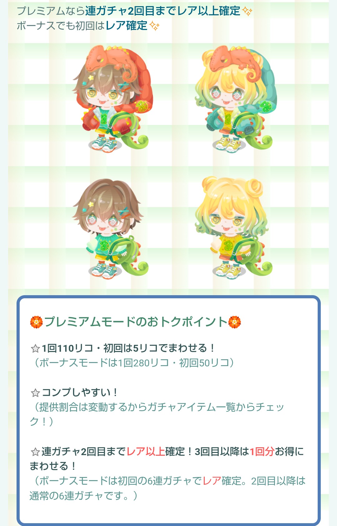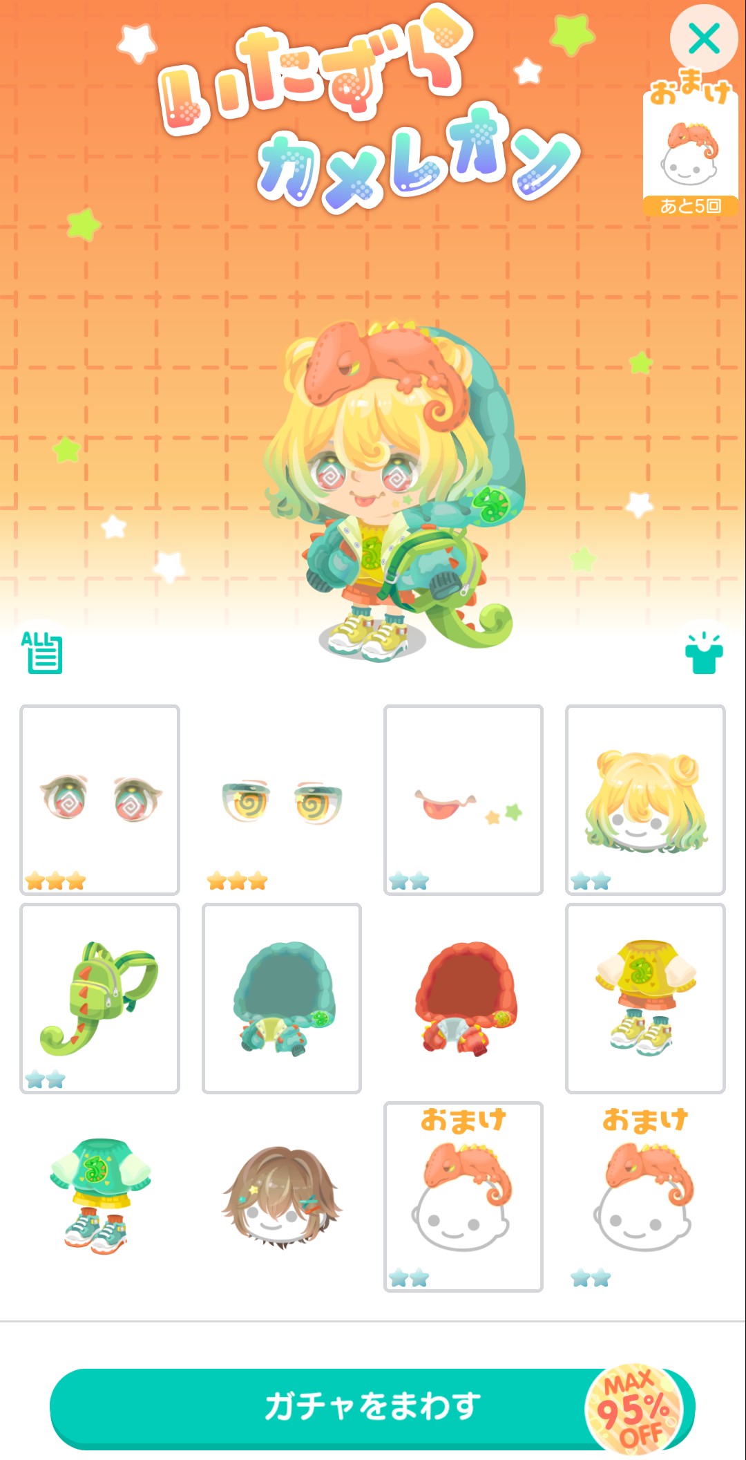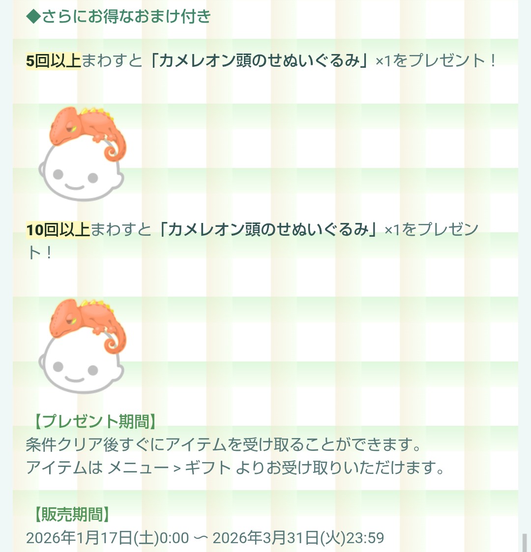 こちらではカメレオンをモチーフにした有料無料選択ガチャより